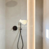 Două băi, câte una pe fiecare nivel, finisate premium; baia principală dispune de walk-in shower