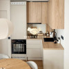 Bucătărie minimalistă, complet utilată: cuptor, plită, mașină de spălat vase, frigider