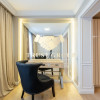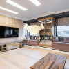 -Pereţi întregi placaţi cu oglindă fumurie ce sporesc senzaţia de spaţiu şi eleganţă din interiorul apartamentului