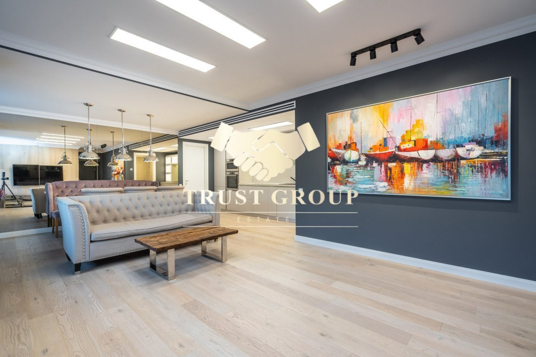 Apartamentul este complet mobilat şi utilat şi este compus din 3 camere, 2 dormitoare, 2 băi, compartimentarea fiind open-space, cu un living spatios de 50 mp care include şi bucătăria deschisă.