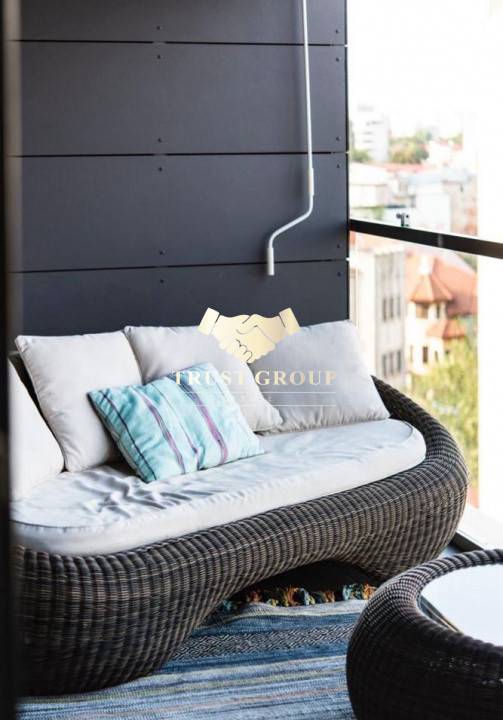Din living și bucătăria open-space se face accesul către o logie spațioasă, ideală pentru relaxare.
