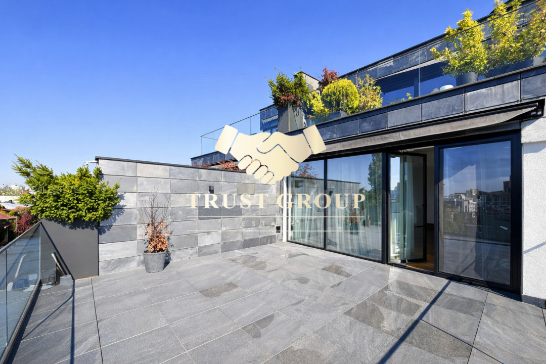 Terasele impresionante înconjoară apartamentul, oferind vederi panoramice către Parcul Cazzavillan și partea de vest a imobilului. Spațiul exterior este perfect pentru momente de relaxare, fiind gândit astfel încât să acomodeze o zonă de lounge și un dining outdoor de 8 persoane, ideal pentru seri memorabile.
