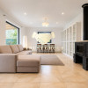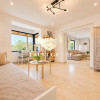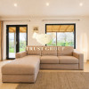 Living luminos, cu zone vitrate mari și acces vizual către grădină