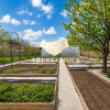 Spațiu verde matur, cu pomi fructiferi pe rod: piersici, meri, cireși, pruni, nuci