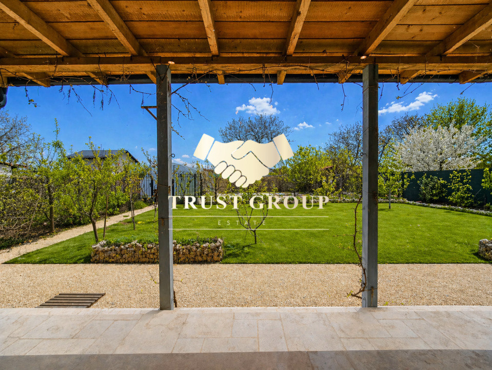 Proprietate situată într-o zonă liniștită și verde, la aproximativ 15 minute de București (A3), în apropierea lacului din Moara Vlăsiei. Construită în 2022, casa este dispusă pe un singur nivel și oferă un echilibru foarte bun între confort, funcționalitate și spațiu exterior generos.