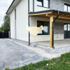 📍 Parter: living luminos cu acces pe terasa acoperită de 25 mp, bucătărie deschisă, dormitor/birou, baie complet echipată și hol generos.