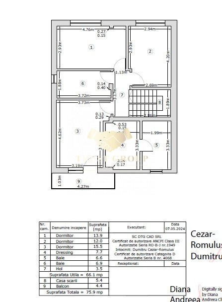 📍 Etaj: dormitor matrimonial cu dressing, baie proprie și balcon privat, plus două dormitoare secundare deservite de o baie comună.