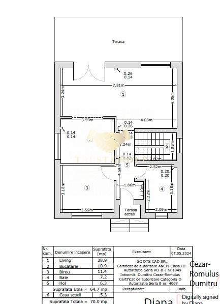 Deasupra etajului se află podul tehnic, cu placă de beton turnată și înălțime de 2,35 m pe mijloc – ideal pentru depozitare sau amenajare suplimentară.