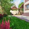Grădina este matură și atent amenajată, incluzând un foișor din lemn de circa 50 mp, zonă de barbeque, iaz decorativ cu cascadă, fântână arteziană, gazon, arbori ornamentali, trandafiri și magnolii. Proprietatea dispune de garaj de 35 mp cu acces direct din stradă și posibilitate de parcare pentru 4–5 autoturisme în curte.