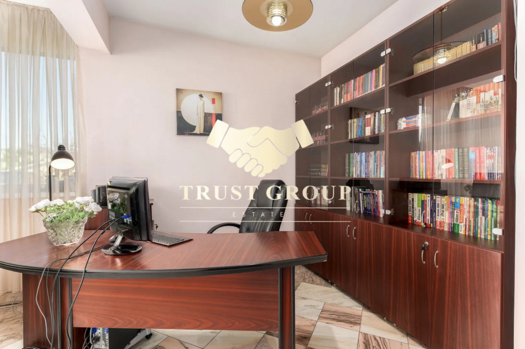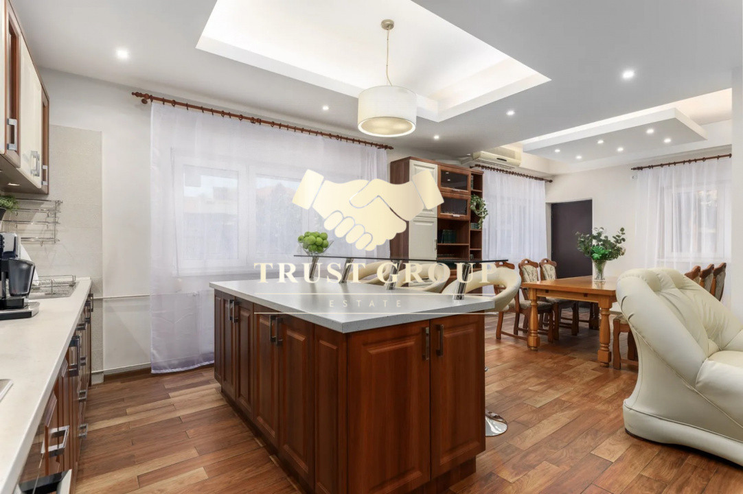 Parter (138 mp): living principal de 51 mp, bucătărie complet utilată, baie, birou, debara, hol amplu și un al doilea living de 44 mp, dotat cu șemineu, bar și zonă de relaxare